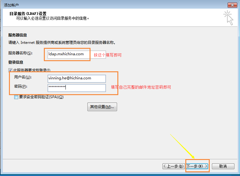 服务器地址:ldap.mxhichina.com