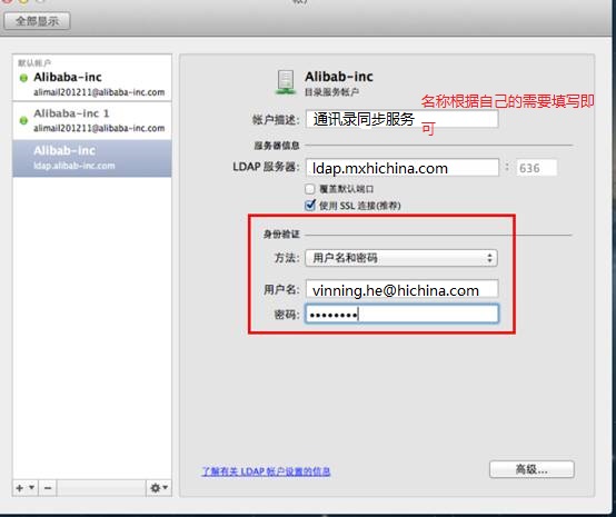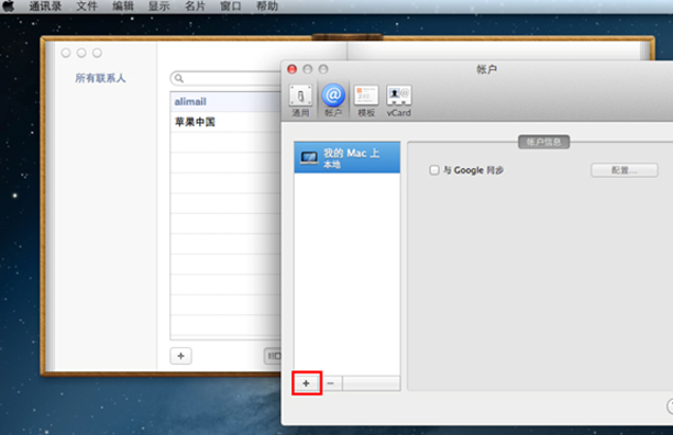 mac maill本地通讯录配置(因苹果官方系统bug,当前只支持macOS10.11以下版本,不包括10.11)