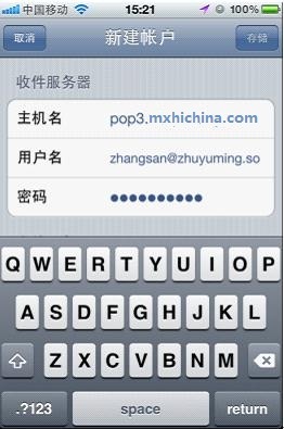 下面以iPhone 4S(系统版本5.1.1)为例,介绍如何设置苹果系统自带的客户端软件(POP/SMTP 方式)。